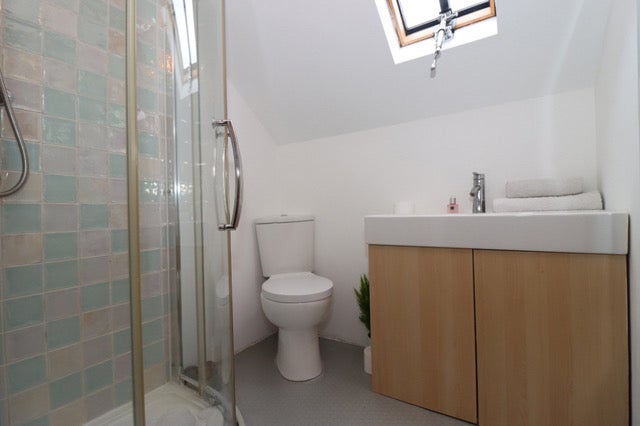 Two bathrooms accompany the two rooms with a shower on the upper floor and bath on the ground floor. **Additional third bathroom with en-suite occupied on ground floor.