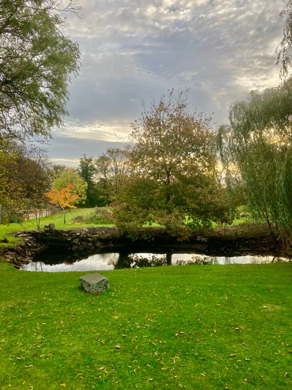 A beautifully maintained south facing garden spread across an acre of land with a woodland area and natural pond. Enriched with nature and sensational sunsets throughout the year.