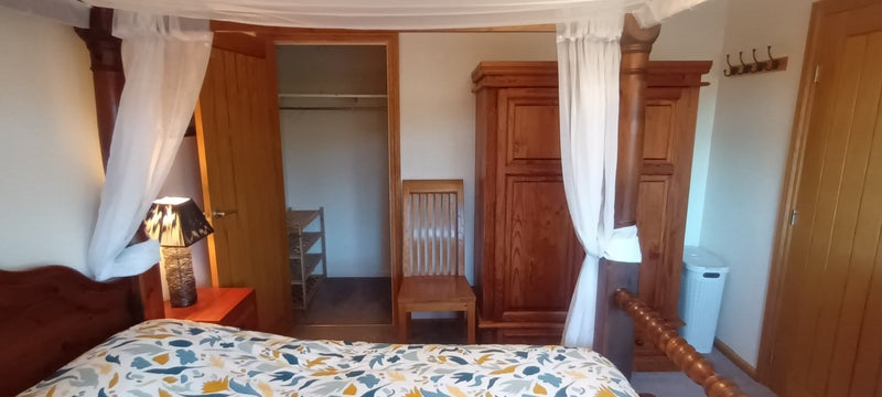 There is a garden with patio table and chairs plus a hot tub :) to the rear of the property with stunning views. We have a gazebo covered area decking area at the front of the house with rattan furniture and log burner.