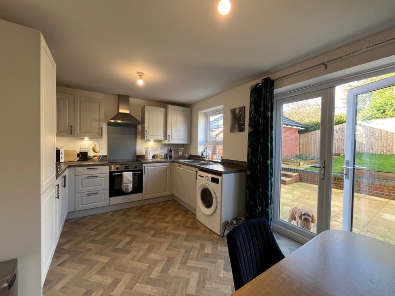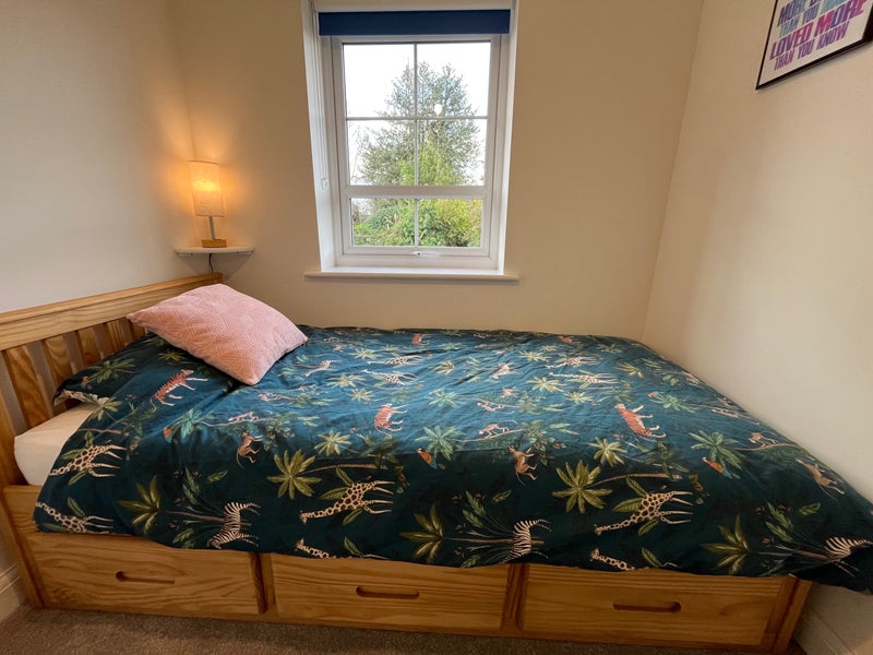 🏠I have one furnished single bedroom, off-suite shower over bath, kitchen cupboard space and one parking space. Shared living room, kitchen and dining room. I live in a quiet new estate with nice local walks and shops. 20 minute drive to Gloucester.