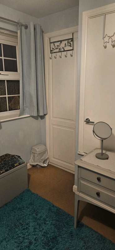 I have a lovely double room top floor opposite a bathroom with shower shared with one other clean and tidy lodger. Off road parking.. fast Internet.. fully furnished.. modern house.. lovely kitchen and garden.. 2 very soft dogs.. smoking permitted. 600 per month.. 500 deposit.