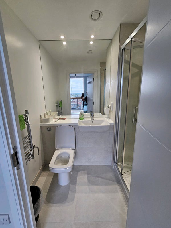 A spacious, well-lit double room with private bathroom is available in a brand-new flat right next to Alperton Station – ideal for someone who wants convenience, comfort, and a calm home environment.