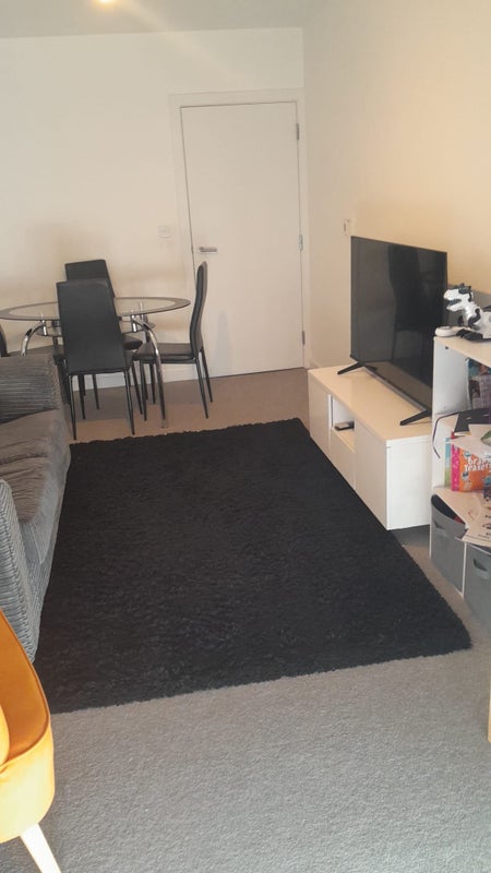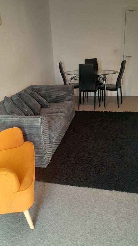 Flat is fully furnished with a shared communal area and modern amenities including a washer dryer and microwave.