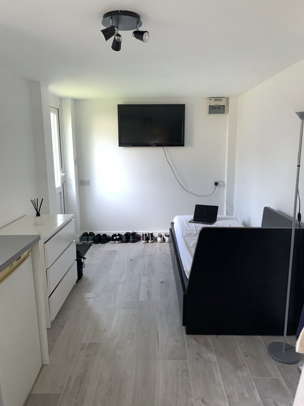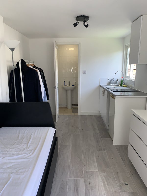 Pleased to offer this spacious room en-suite room with kitchenette available for let asap. This studio benefits from complete privacy and ample garden space. Free off street parking is included.