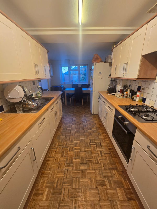 The room itself has plentiful storage and easy access to the shared bathroom (shared with 3 others). There is a shared furnished living room. There is also a shared kitchen in the house which is fully furnished and equipped with all kitchenware, a gas stove, two fridges, a separate small freezer, and a dishwasher.