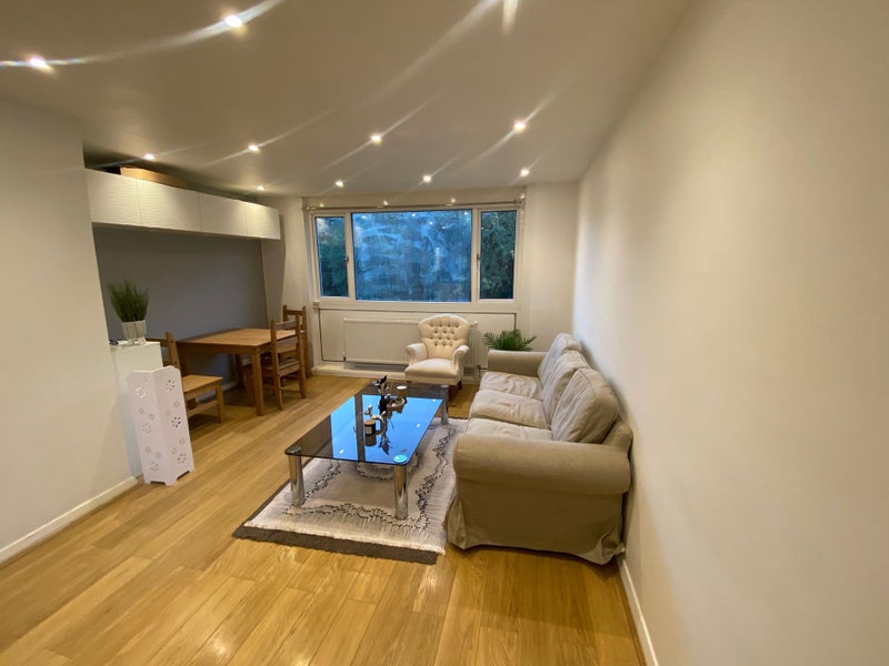 The flat has a shared living room, kitchen, bathroom, and toilet. It’s in a good location with easy access to transport and shops nearby.