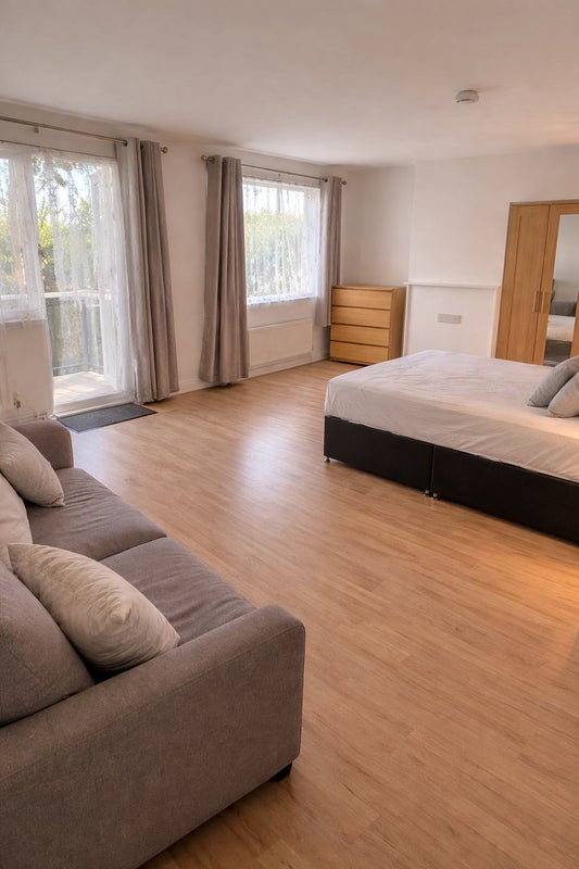 The room is generously sized at 19'2 x 11'1, offering plenty of space for both sleeping and relaxing, and comes furnished with a sofa, giving the room a private lounge feel. The room also benefits from balcony access, bringing in lots of natural light and providing an outdoor space to enjoy.