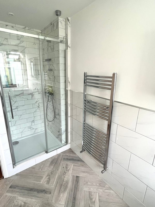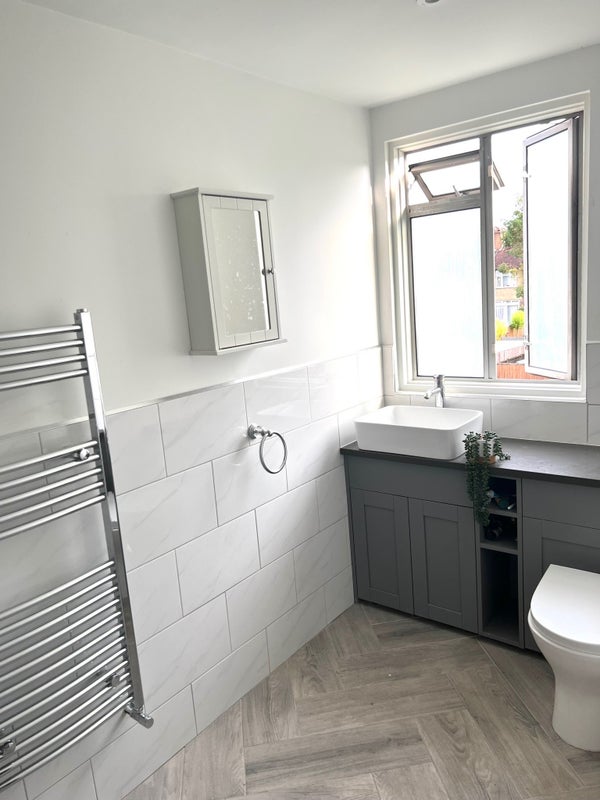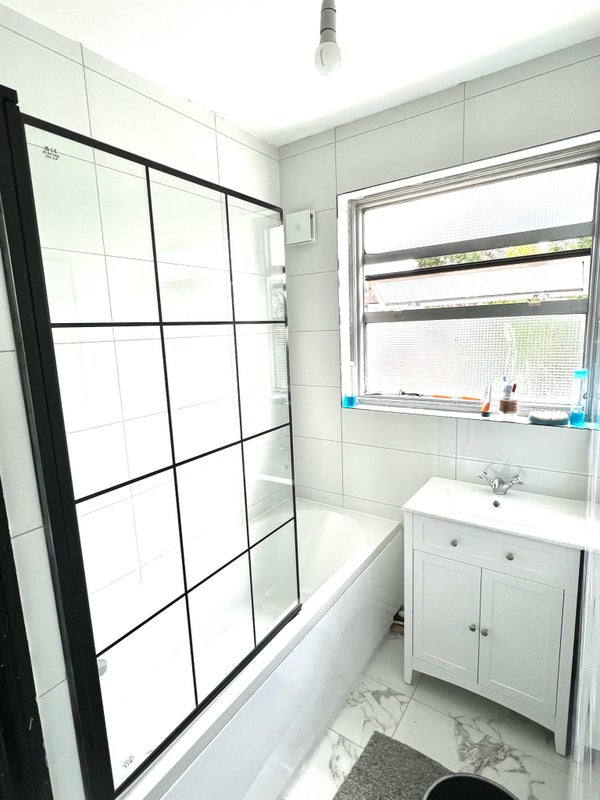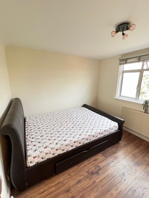 A bright and generously sized room located on the top floor of a beautiful, spacious house, sharing a large, well-appointed bathroom with just one other occupant.