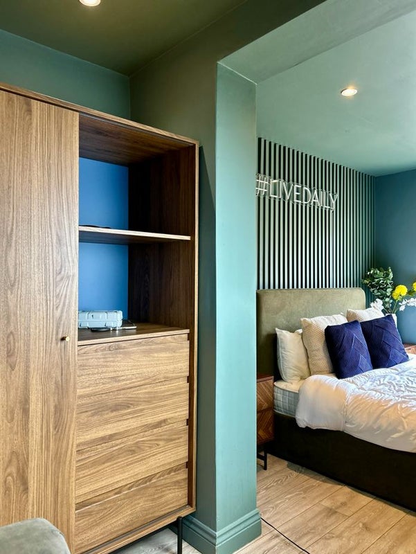 This is far from an average double room - it is impressively spacious, offering the kind of size rarely available in shared accommodation. The room is furnished with brand new, high-quality furniture, including a modern ottoman storage bed, providing generous built-in storage while maintaining a sleek, uncluttered look. The space easily accommodates a full bedroom setup along with a comfortable work-from-home area, without ever feeling cramped.