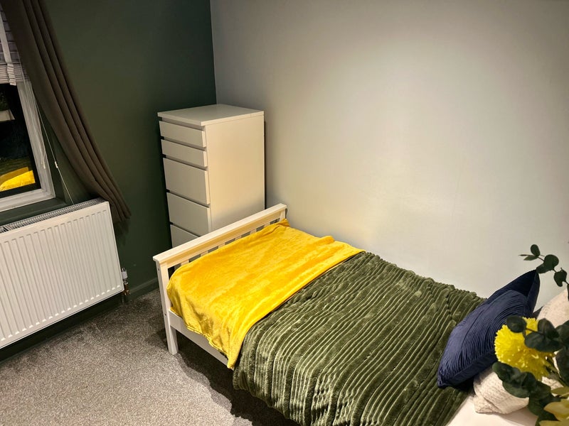Bright, well-presented single room available in a clean, professional home just 5 minutes from Farnborough Hospital.