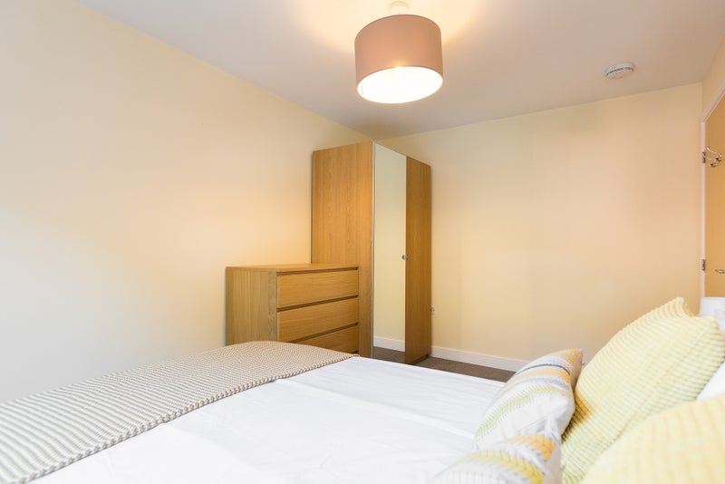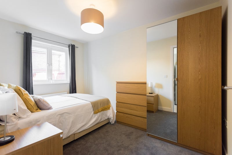 Your room is a double on the ground floor of a 5-bedroom house set over 3 floors. Inside your furnished room you’ll find a double bed, plus a light oak bedside table, chest of drawers, and a wardrobe with a full-length mirrored door.