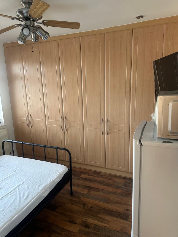 A spacious (10’ x 13’) double bedroom available in a well-maintained home. Designed for a busy professional who values their own space and convenience. Havering Gardens, Chadwell Heath, RM6 5AL.
