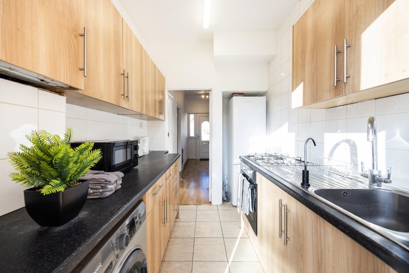 ✔️ Modern Kitchen: Cook, socialise, or relax in this fully equipped kitchen with premium appliances: washing machine, dryer, oven, hob, fridge-freezer, microwave, toaster, and kettle.
