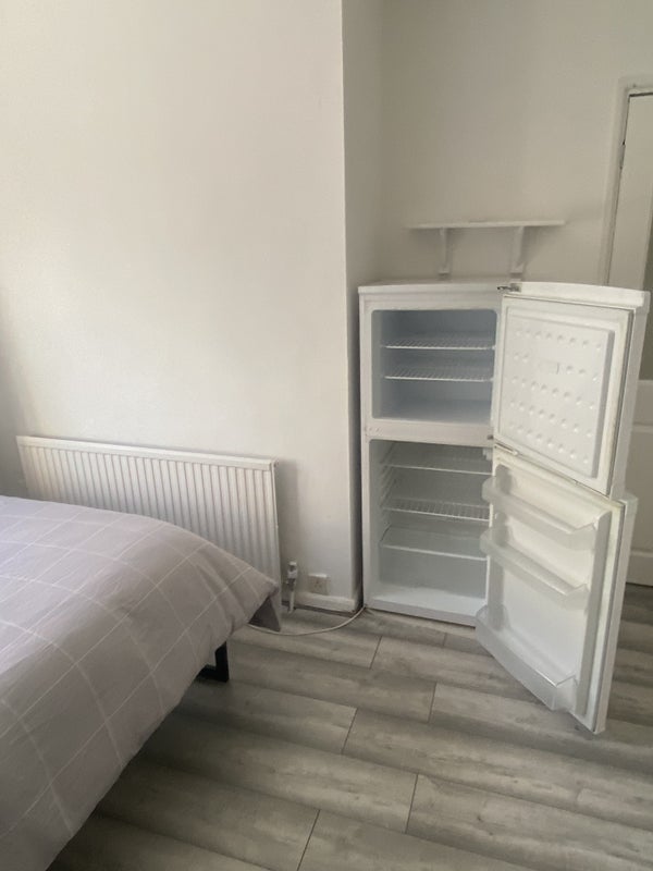 Room is one of two in a newly renovated, semi-detached house in Dagenham. Clean room includes your own refrigerator, brand new double bed and wardrobe.