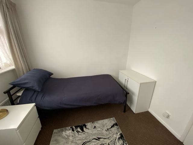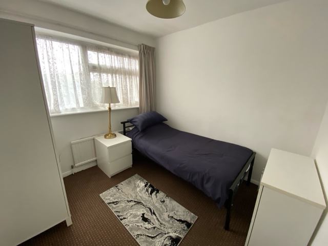 Single room to let in shared house. Room is spacious enough for a small double bed. Room is furnished with single bed, double wardrobe, cupboard unit and bedside chest of drawers. Property is located in quiet area, 7 mins walk to Elm Park Station and good connections for bus routes. Fully equipped kitchen.