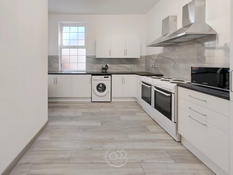 The shared kitchen is bright, spacious, and fully equipped with brand new appliances, including double cookers, large fridge freezers, washing machine, microwave, and ample storage. Designed to accommodate multiple occupants comfortably, this kitchen is ideal for professional sharers who value space and quality.
