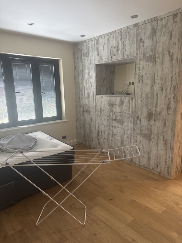 The room is big massive with a garden view free parking 2 min walk to a bus stop. 10-15 min walk to station!