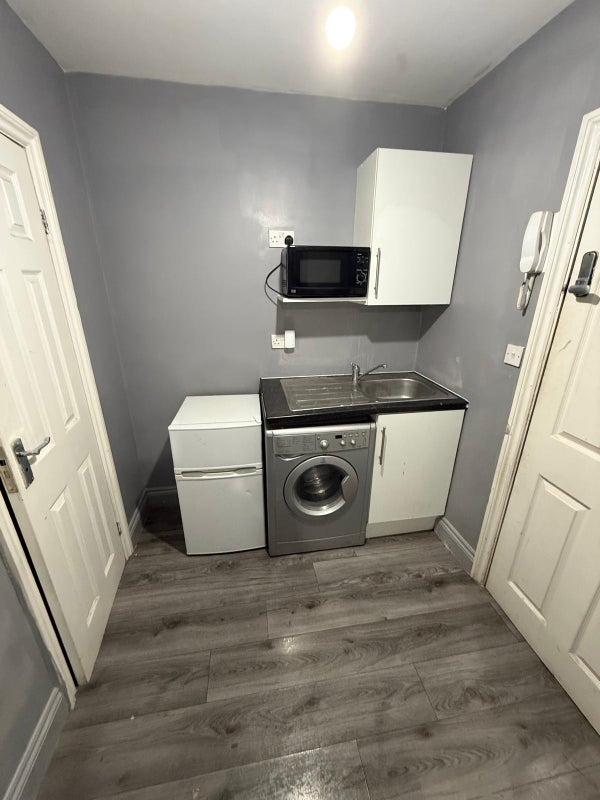 This ensuite room with small kitchenette offers contemporary living with beautifully decorated interiors .