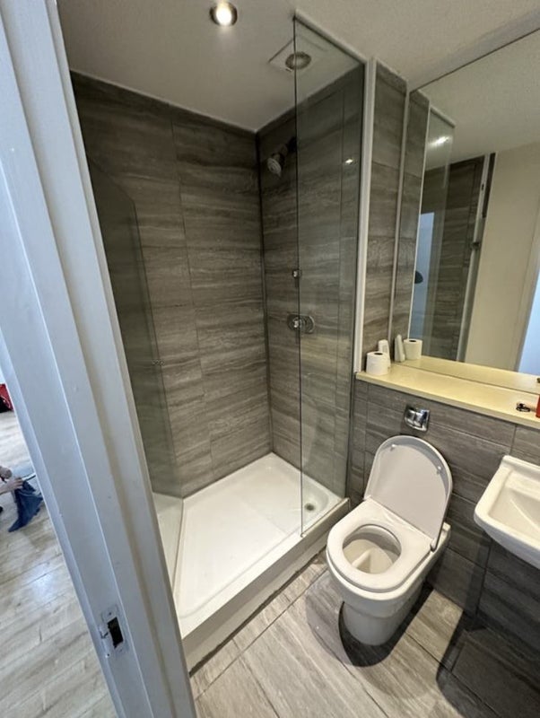 one room is ensuite, total two bathrooms/toilets in this flat.