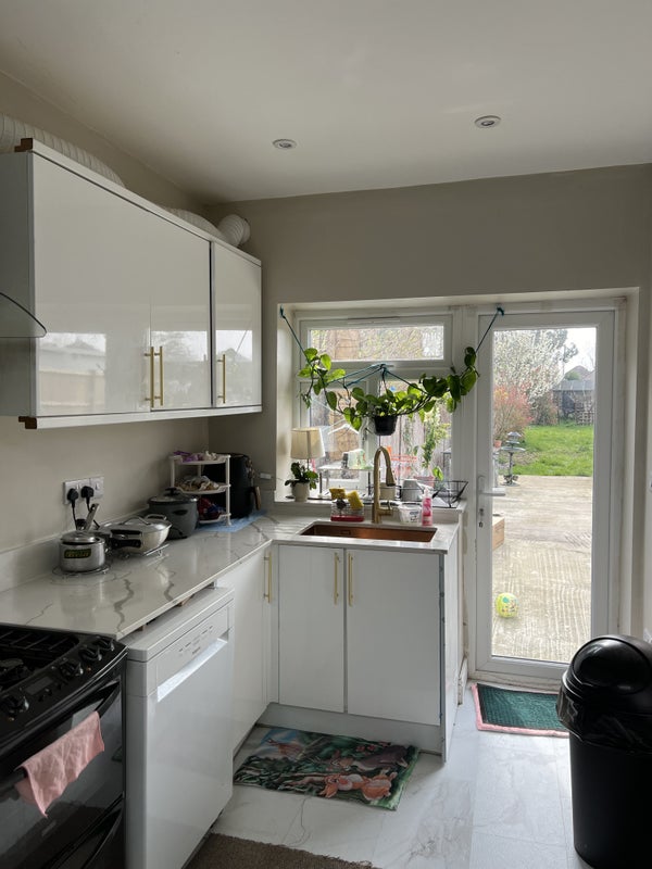 Dobule bed room in 2 bed room house Open kitchen sharing lobby dining big garden good for summer party BBQ and all siting . Private car, scoter, cycle parking and storage room JYM setup .