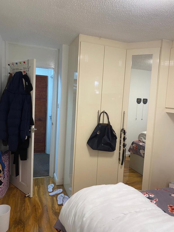 1bedroom with two sharing bed and the common living room and a common kitchen.