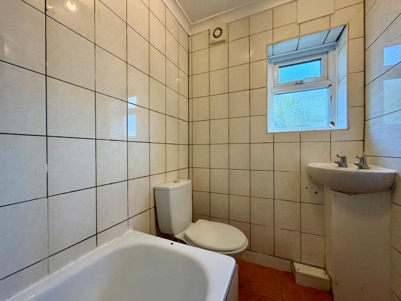 Bathroom: Double Glazed Window, Low-Level W. C., Wash Hand Basin, Radiator, Panel Enclosed Bath with Mixer Taps & Shower Attachments, Tiled Walls & Flooring