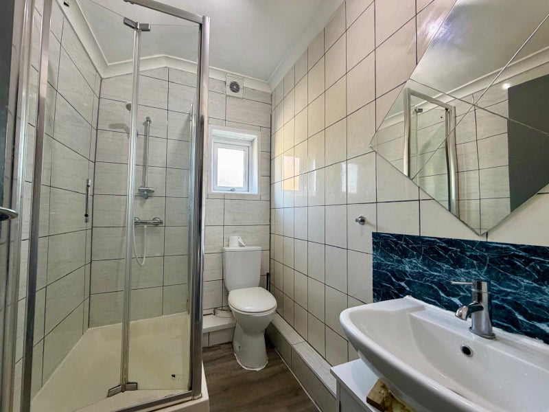 Shower Room: Double Glazed Window, Low-Level W. C., Wash Hand Basin, Shower Cubicle, Tiled Flooring, Radiator