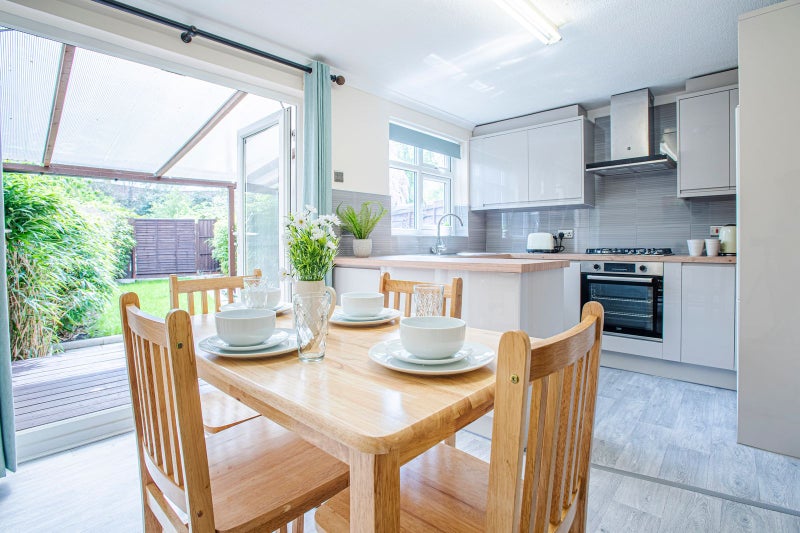 The ground floor features a spacious living room and a large kitchen/dining area, perfect for relaxing or socialising. The house also benefits from a private garden.