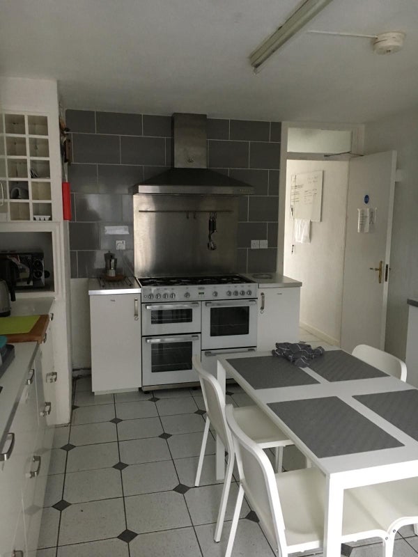 The kitchen is a really good size with a central table. There is plenty of cupboard space. There are two tall integrated fridge/freezers and a large seven hob, two oven, one grill, range cooker . There are also large deep drawers and cupboards, fairly allocated to each room, and a washing machine.