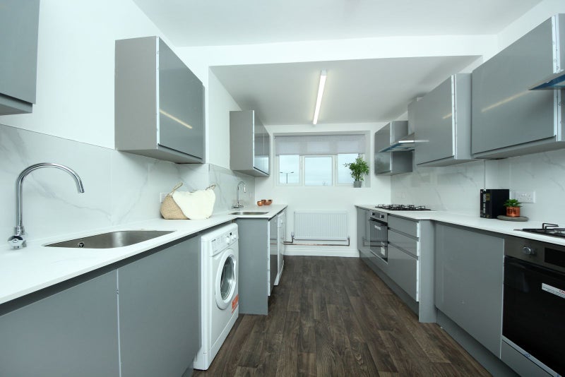 The kitchen is set up perfectly for a house share, and there is a great living area.