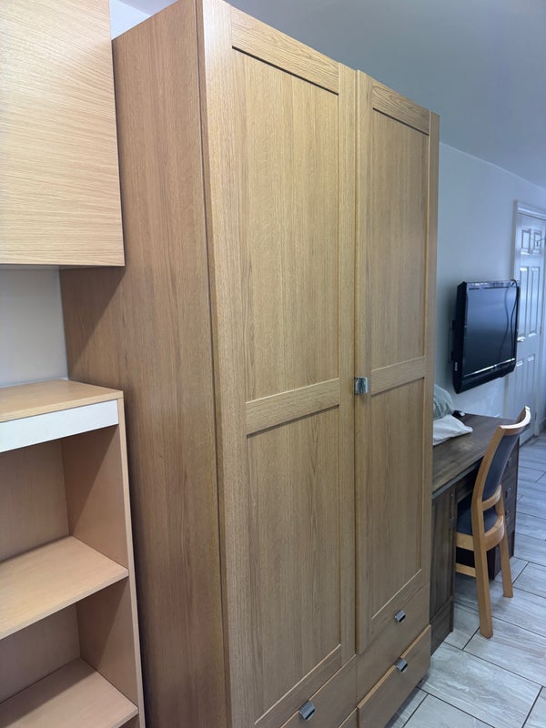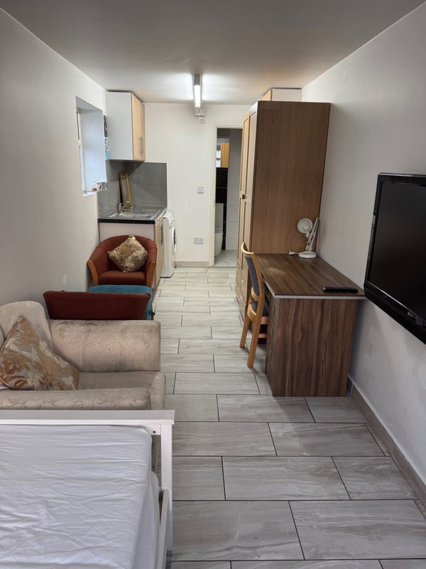 Spacious En- suite available for rent for a couple or single person from 20th of April 2026, the en-suite has private toilet and shower, desk, large wardrobe, double bed, and Washing basin, washing machine, and TV.