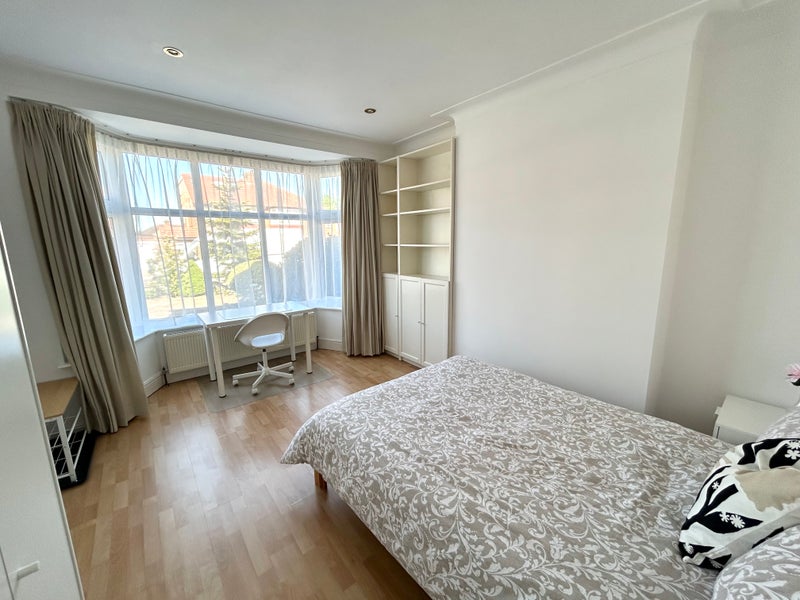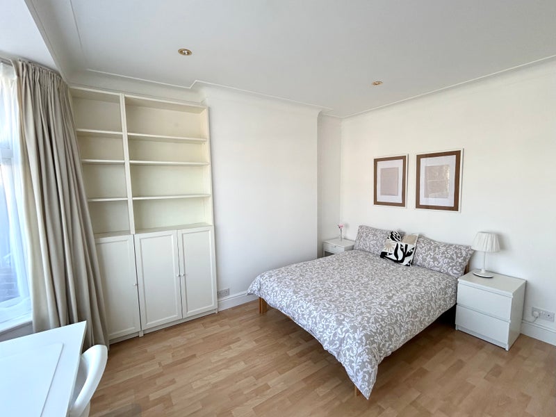 Ideal for a single working professional, the room includes a comfortable double bed with pocket-sprung mattress, blackout blind, and generous wardrobe storage. The kitchen and bathroom are shared with just two other considerate housemates (single occupancy).
