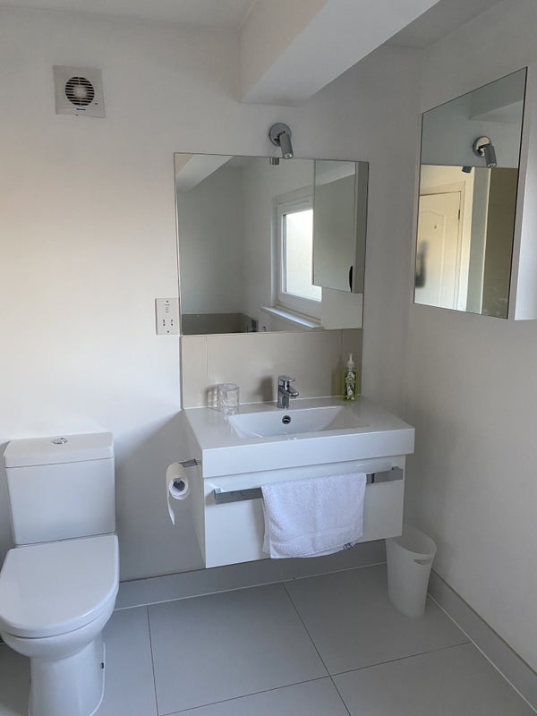 Fully furnished, including a super-king sized bed, 50 inch wall mounted TV plus sky box and super fast WFI. Kitchen facilities include fridge, combi microwave and hob. Large modern en-suite bathroom, complete with bath and walk-in shower. Suite also includes a dressing room with plentiful storage, which cab double as office space. Also for your private use is a roof terrace with tree-top panoramic views. Ample free parking.