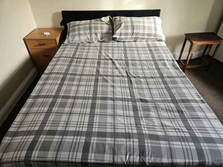 A comfortable double room is available in a clean and friendly house, conveniently located in Feltham.