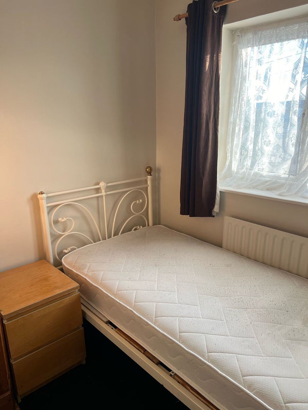 Large single furnished room in friendly shared house minutes away from Heathrow Airport. All bills included. Shared kitchen, 2 shared bathroom/toilets. Large garden. Driveway.