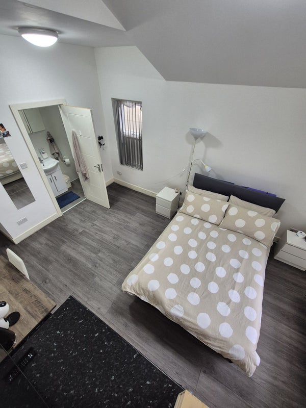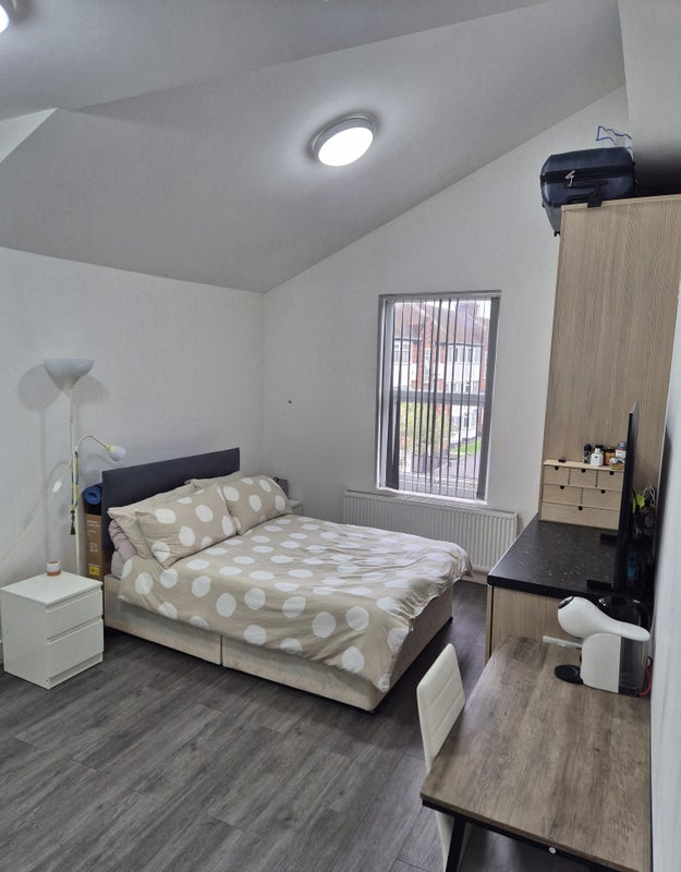 Double room available in a refurbished seven bedroom house with all rooms (double) having an en suite shower and wc. There is a large shared kitchen, living and dining area as well as an outdoor decked (with garden furniture) area.