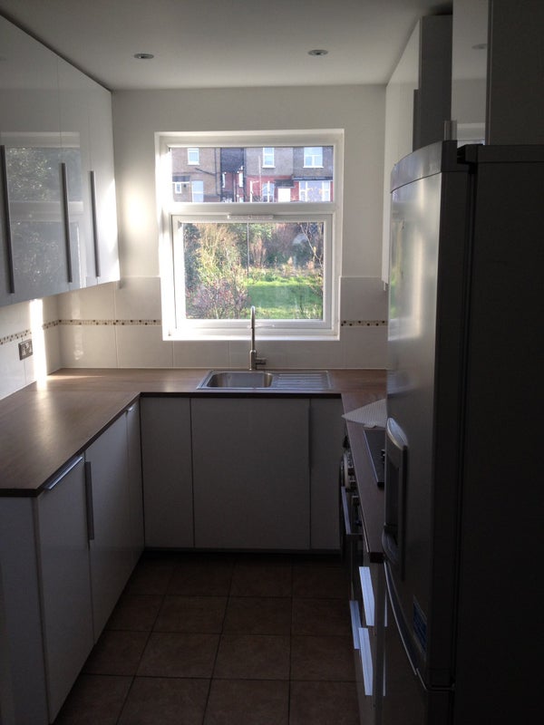 -Fully fitted kitchen, with washing machine, dryer and dishwasher.