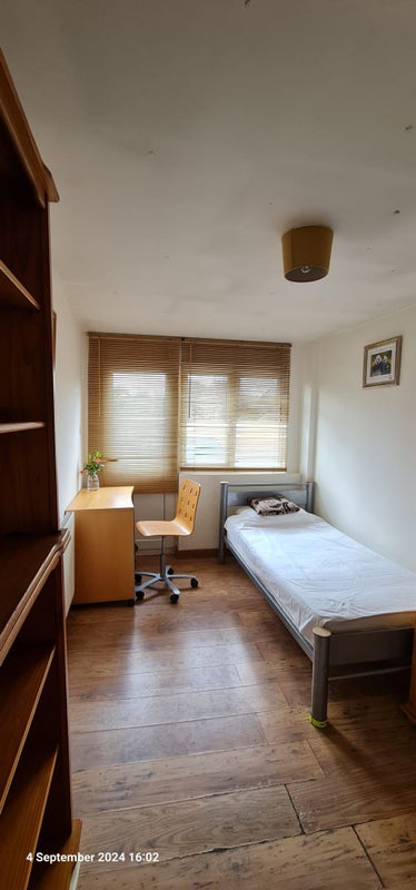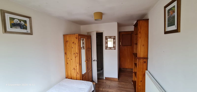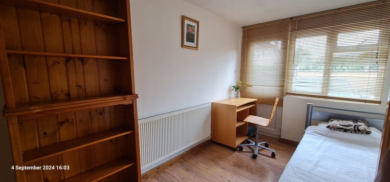 Bright & Spacious medium size en suite bedroom available in a friendly clean house share for a single occupant. Fully furnished, room has