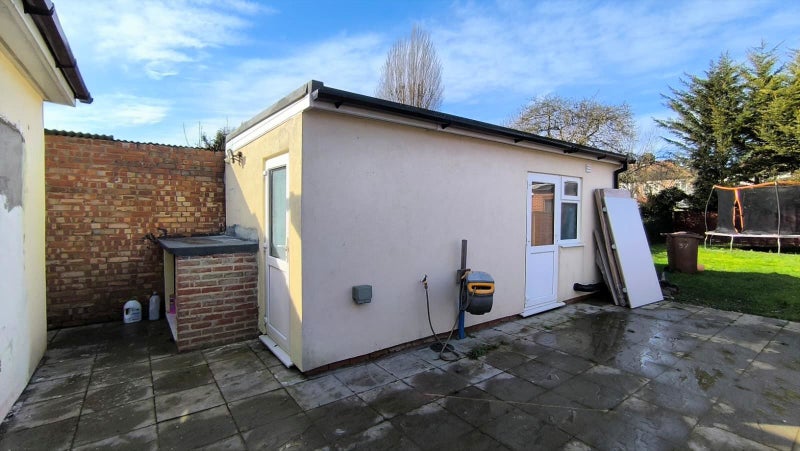 The studio benefits from its own private entrance, accessed via the side alley, providing added privacy and independence from the main house.