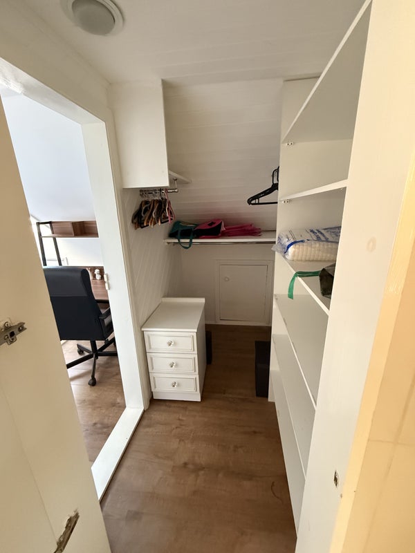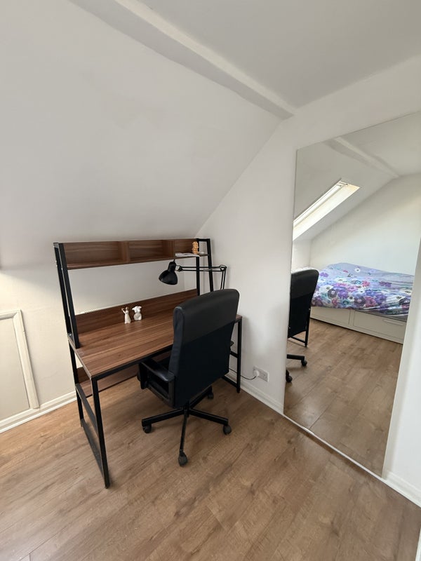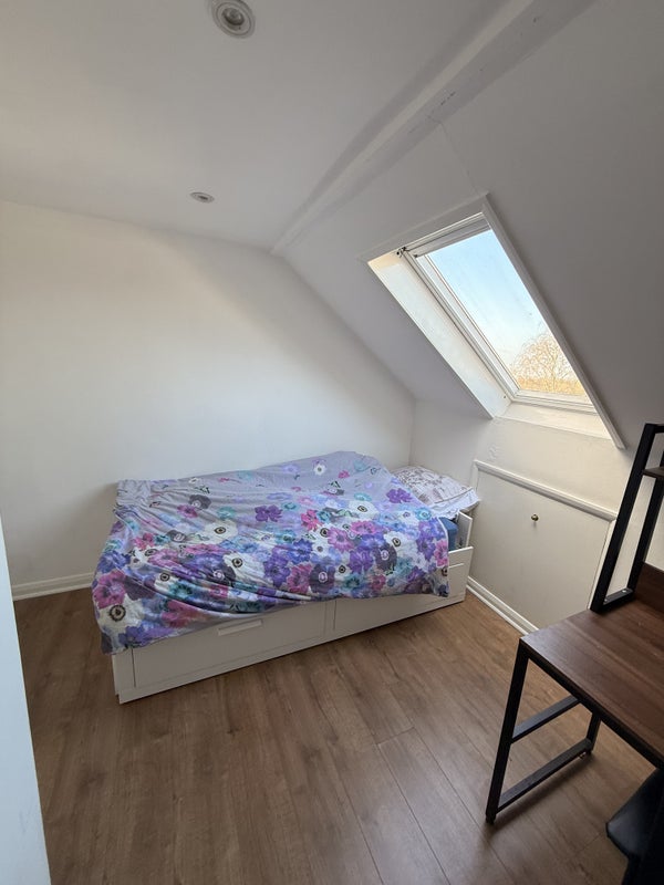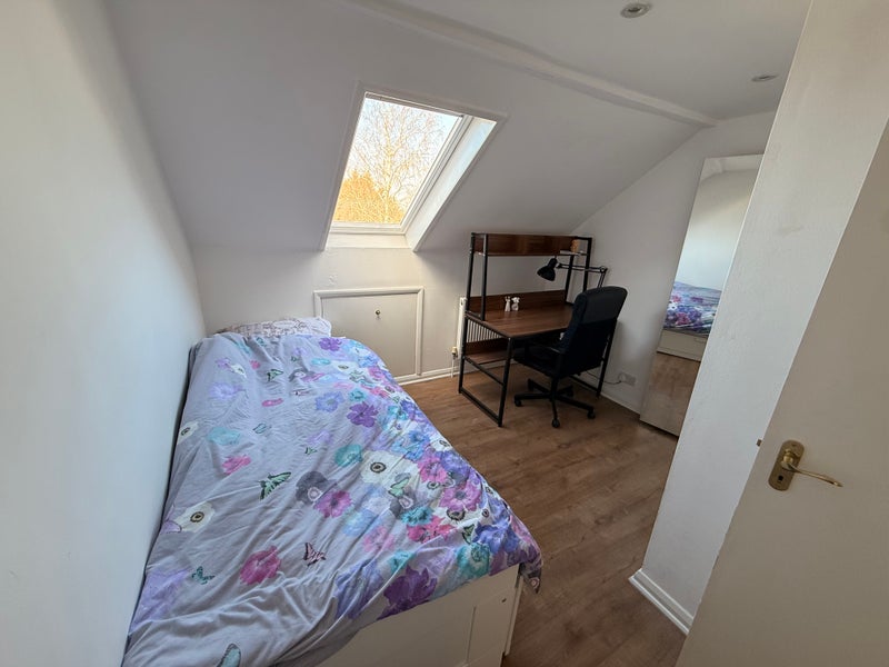 The accommodation is situated in the attic on the top floor of the house and is reached via the house staircase. The staircase provides access through the property, while the bedroom, walk in wardrobe, bathroom, kitchen, and living area on the top floor are for the tenant’s sole use and are not shared.