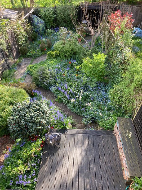 * large beautiful garden (6 x 25 m) with decking area + two other spots with a bistro table, well maintained but giving a sense of wilderness thanks to the design, curtained at the back with tall trees and no vis a vis.