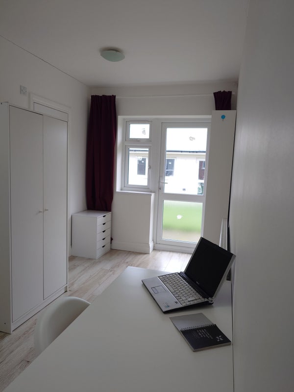 Spacious Living: The room boasts plenty of storage space, including a wardrobe, drawers, desk, and comfortable double bed.