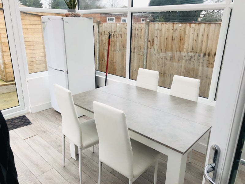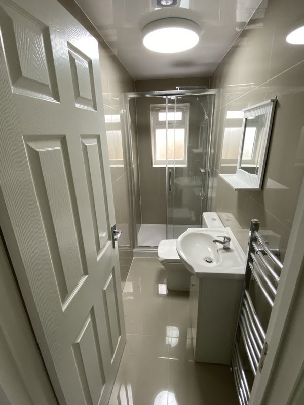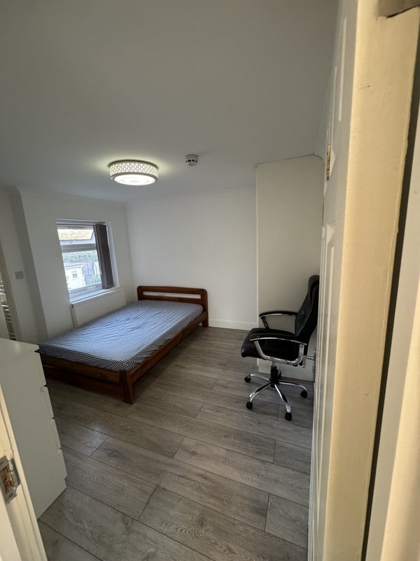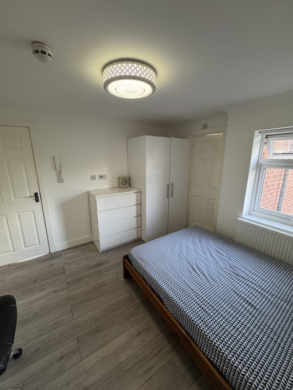 En-suite double room with new double bed & mattress and cupboard with extra facilities. WiFi , TV arial signal, sky satellite signals, Intercom system provided. Bus stop just 1 minute walk , train station is 15 minutes walk .