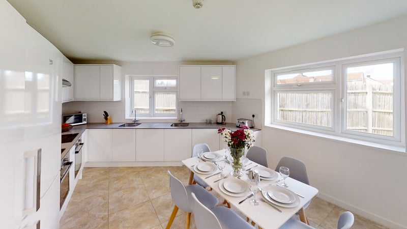 - Newly fitted modern kitchen/dining/lounge with 2 large fridge-freezers, 2 ovens/hobs, 2 sinks and shared homeware available.