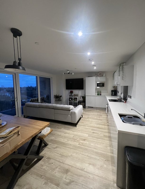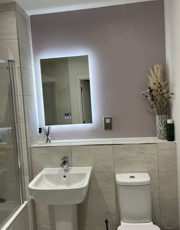 Beautiful well looked after large double room with floor to ceiling windows, its own bathroom with bath/shower and electric bluetooth heated mirror.