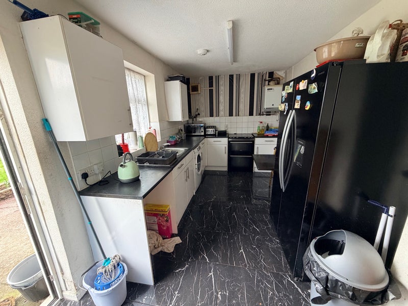 The house features a large shared kitchen, a shared bathroom, and an additional toilet (1.5 bathrooms total), giving extra convenience for multiple tenants. The property is well-sized, offering a comfortable and relaxed living space.
