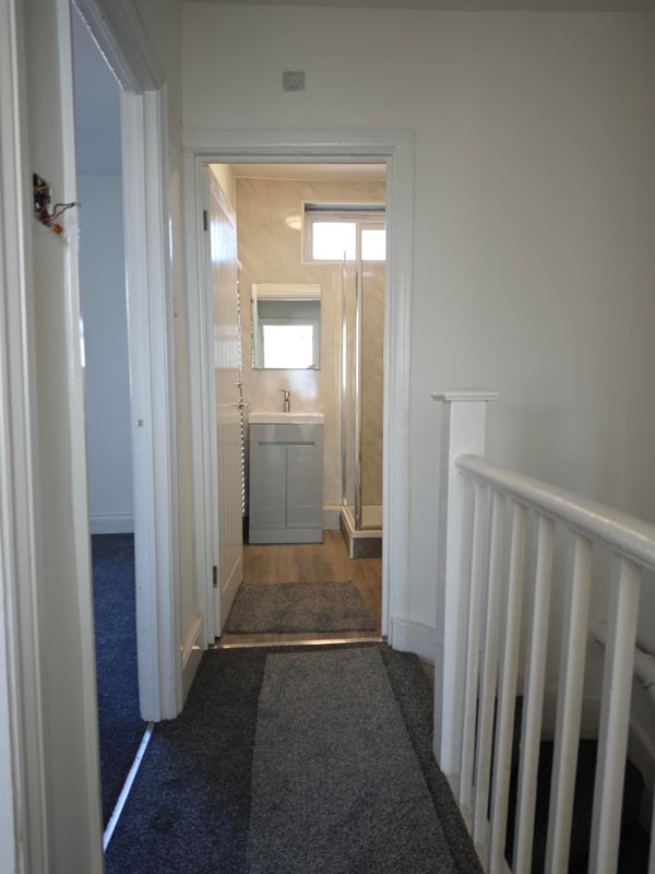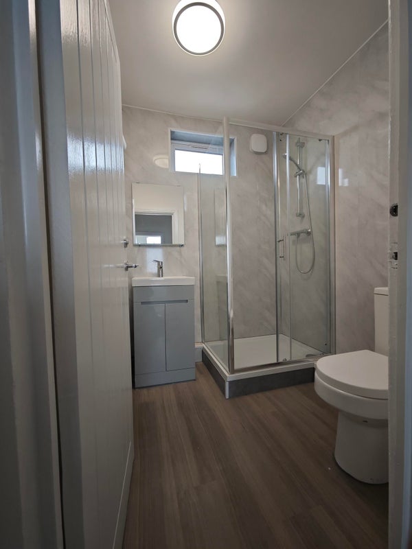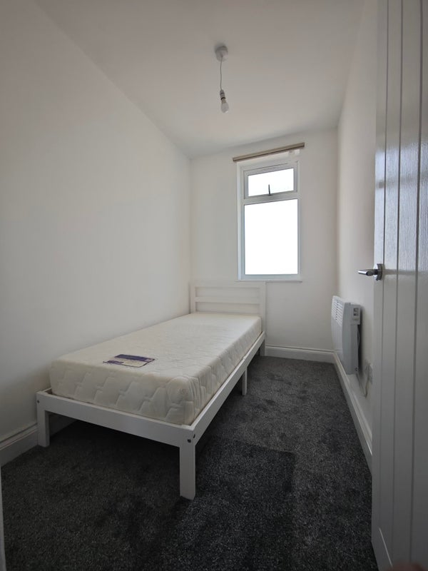 (4) Single Bedroom: (2.6m x 1.7m) - Single bed, NEW carpets, chest of drawers, black our blinds, electric panel heater. (5) Bathroom (1.8m x 1.9m) - Brand new shower, toilet, basin and electric towel rail, LED light.