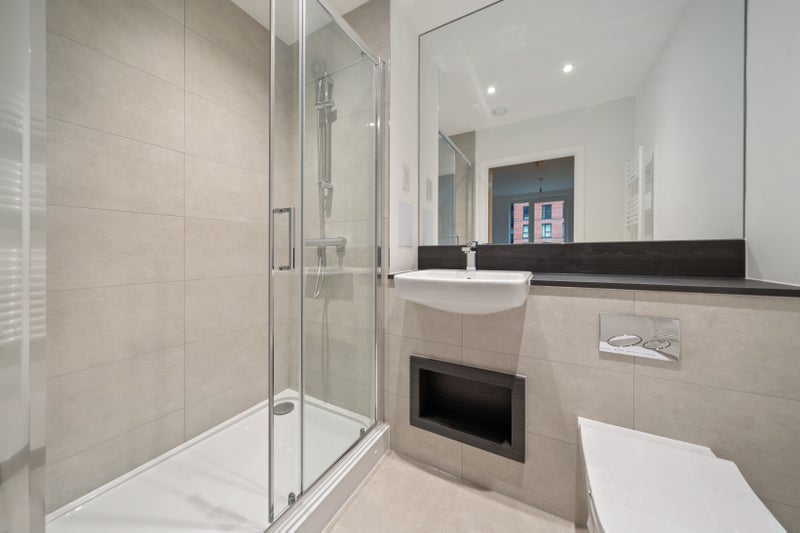 Residents have access to a range of on-site amenities, including a residents' gym, landscaped communal spaces, cycle storage and canal-side walkways. The wider development includes over nine acres of green space, creating a pleasant and well-planned residential environment.
