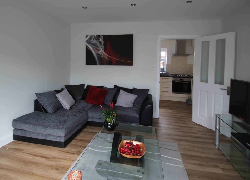 There's a large fitted kitchen with all appliances including a washing machine, tumble dryer, dishwasher as well as a separate dining room. Enjoy using the beautiful shared lounge with sofas, armchair and large flat screen TV & DVD player.