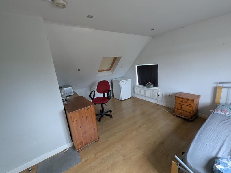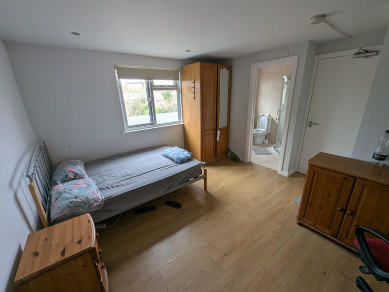 Room has en-suite shower, toilet. Double bed, cupboard, Fridge/ freezer/ microwave.